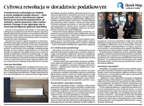 QuickMap to narzędzie do wykonywania analizy podatkowej (research) z wykorzystaniem sztucznej inteligencji, które radykalnie przyspiesza pracę doradców podatkowych, radców prawnych, adwokatów czy biur rachunkowych.