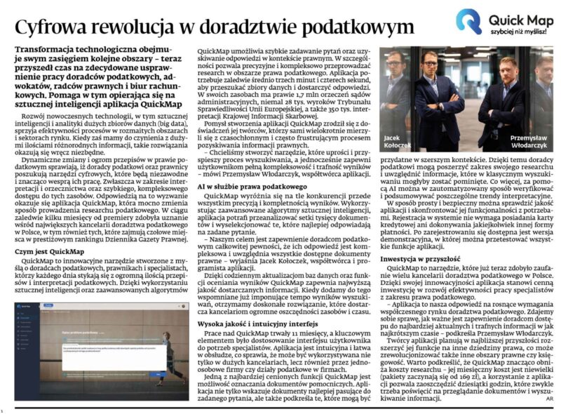 🧠 Cieszy nas szczególnie, że tak wielu z Was już dziś korzysta z QuickMap, wiedząc, jaką przewagę daje szybki, precyzyjny i kompleksowy dostęp do wiedzy podatkowej.Zaledwie kilka sekund wystarczy, aby przeszukać miliony dokumentów i dotrzeć do najtrafniejszych odpowiedzi – wspierając codzienną pracę doradców, prawników i specjalistów.
